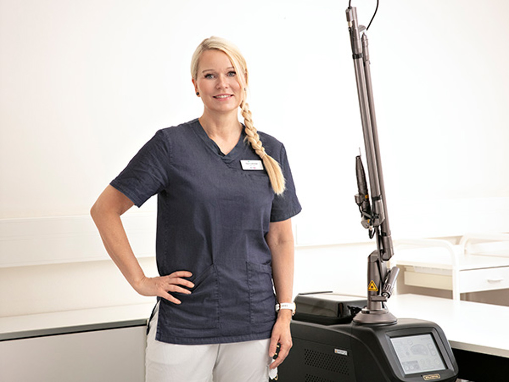 ”Hoito ei riko ihoa. Kun jälkihoito tehdään ohjeen mukaan, laserhoidosta ei jää arpia. Jälkihoito-ohjeet saa laserhoidon yhteydessä.”