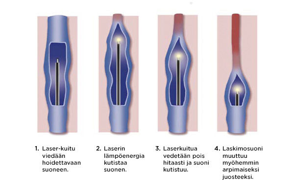 Laserkuidun lämpöenergia kutistaa hoidettavan suonen.