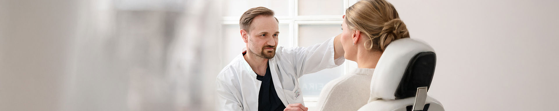På mottagningen kartläggs behovet av operation och vilken operationsteknik som passar bäst just dej. Kirurgen avgör samtidigt om det är frågan om behandling av sjukdom eller ett estetiskt ingrepp. Boka enkelt en tid kirurgens konsultation via vår nätbokningstjänst.